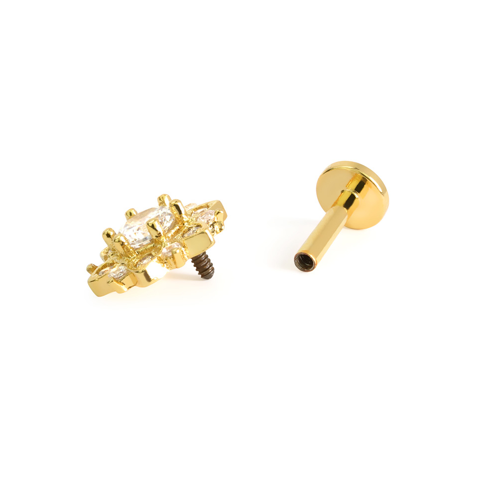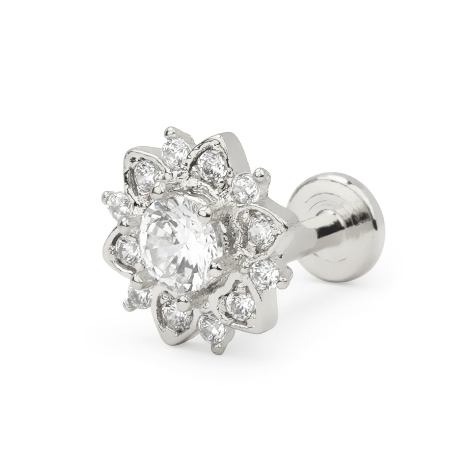 Labret mit steinbesetzter Lotusblume und Innengewinde