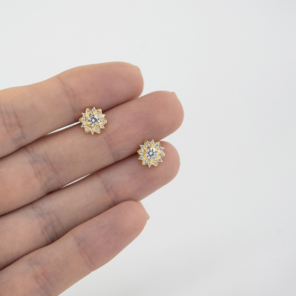 Das Design auf der Spitze des Schmucks ist die wunderschöne Lotusblume aus Messing. Der gesamte Schmuck wurde beschichtet, dies gibt dir die Möglichkeit aus mehreren Farben zu wählen. Somit kannst du den Schmuck auch in einer goldenen oder rotgoldenen Version erwerben. Die Lotusblume misst insgesamt 8 mm und ist mit mehreren kleinen klaren Steinen am Rand und einem facettierten Edelstein in der Mitte besetzt. Der Edelstein misst 3,5 mm.