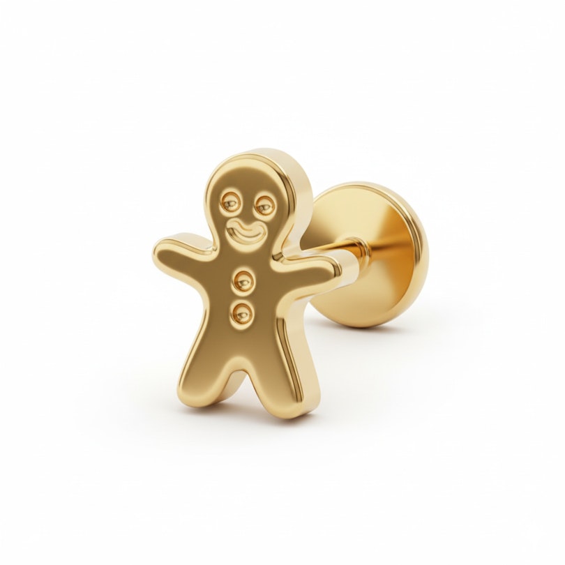 The gingerbread man labret in titanium is a playful nod to nostalgia. Shaped like the cookie everyone knows, it adds a little fun to your ear stack without taking itself too seriously.