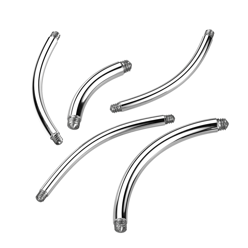 Diese gebogenen Stäbe lassen sich gut für Augenbrauen-, Ohr- und Intimpiercingsverwenden. Aber auch für Bauchnabelpiercings kann man hier das passende Modell finden.