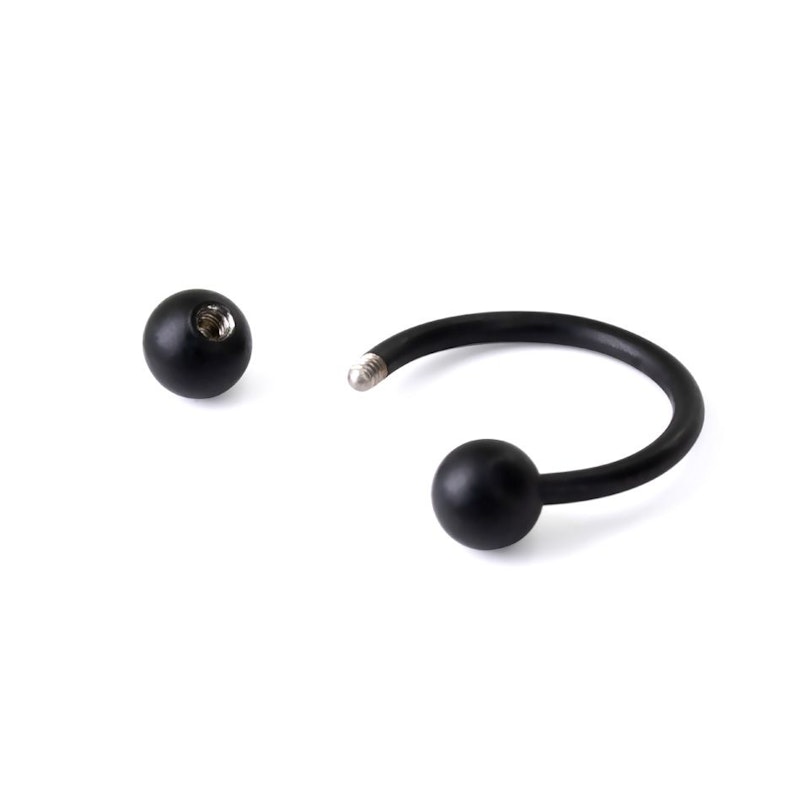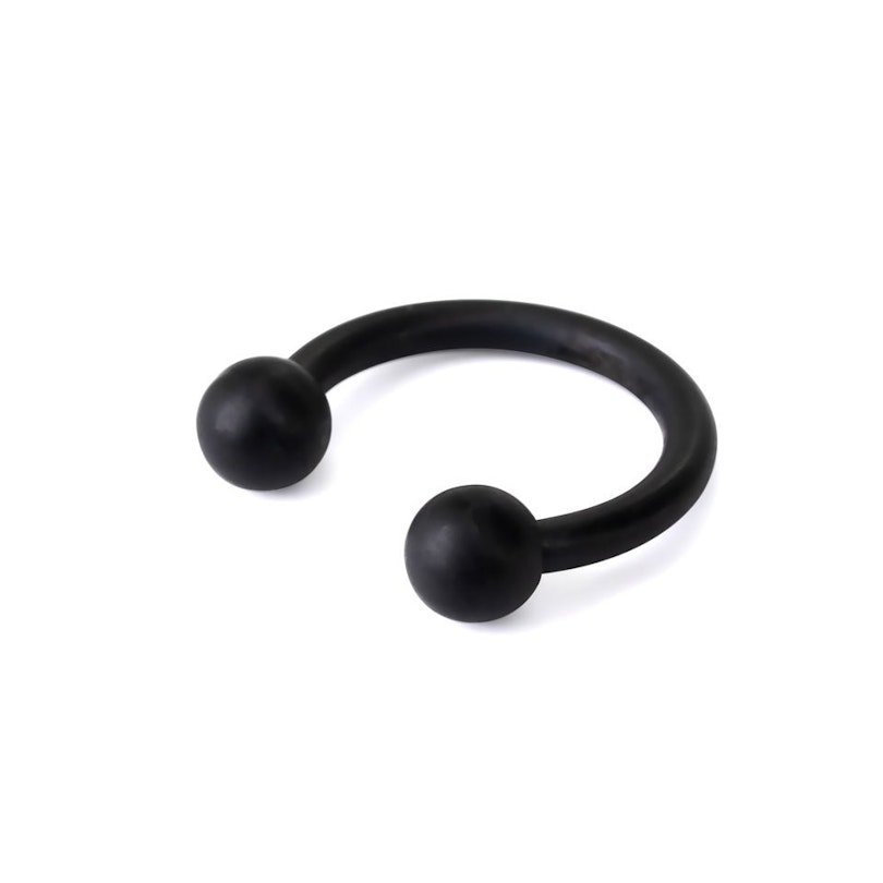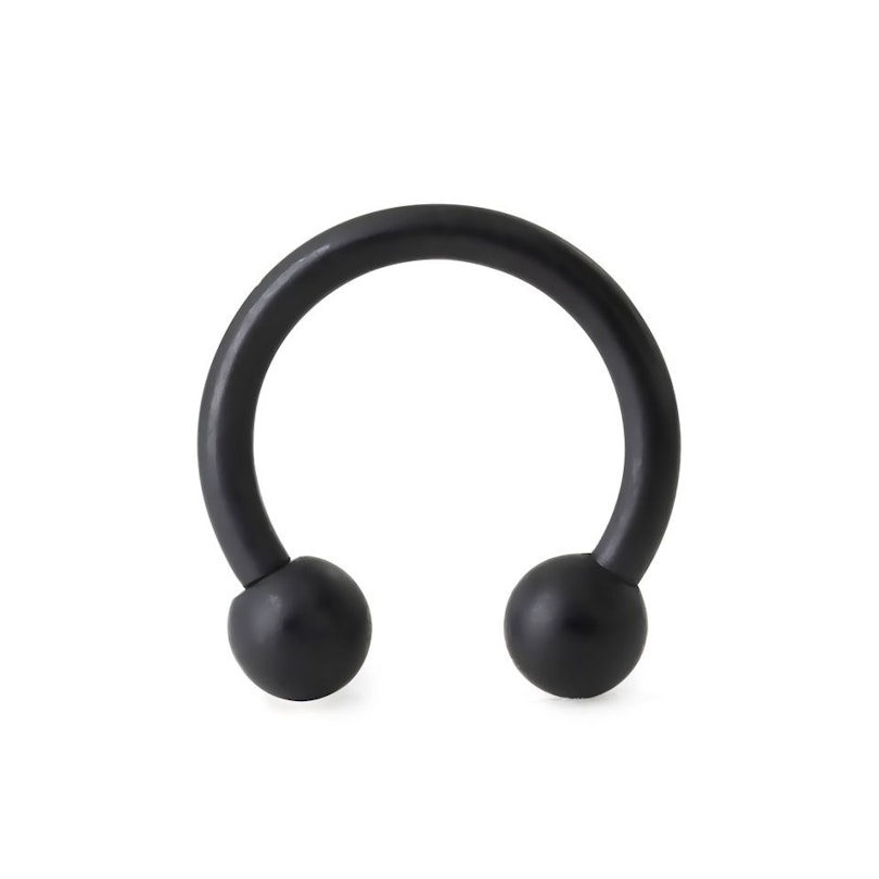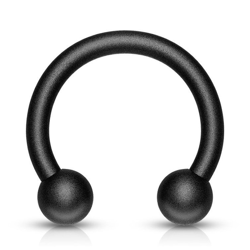 Der Schmuck ist wie alle anderen Hufeisen auch, ein offener Ring mit einer Kugel an jedem Ende. Der einzige Unterschied zu anderen Schmuckstücken ist die die Farbe. Die meisten haben blanke und metallische Farben, dieses Hufeisen dagegen hat eine schöne mattschwarze Oberfläche erhalten, die es zu etwas Besonderem macht.