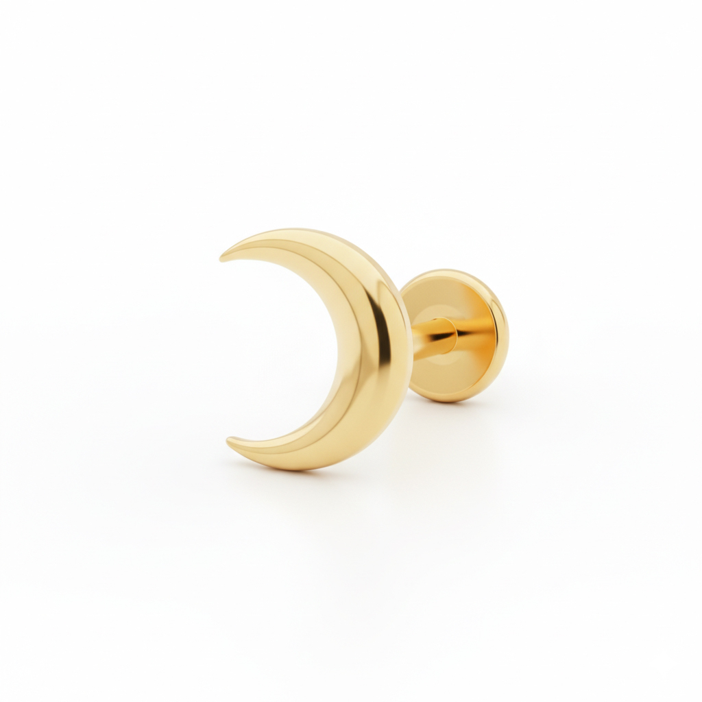 Dieses Mondsichel-Labret aus Titan, das in goldener oder silberner Farbe erhältlich ist, soll dich stilvoll durch die späten Nachtstunden oder frühen Morgenstunden begleiten, wenn alles ruhiger und persönlicher ist. Sein Design in Form eines Halbmondes ist perfekt, um deinem Ohrschmuck einen minimalistischen Touch zu verleihen.