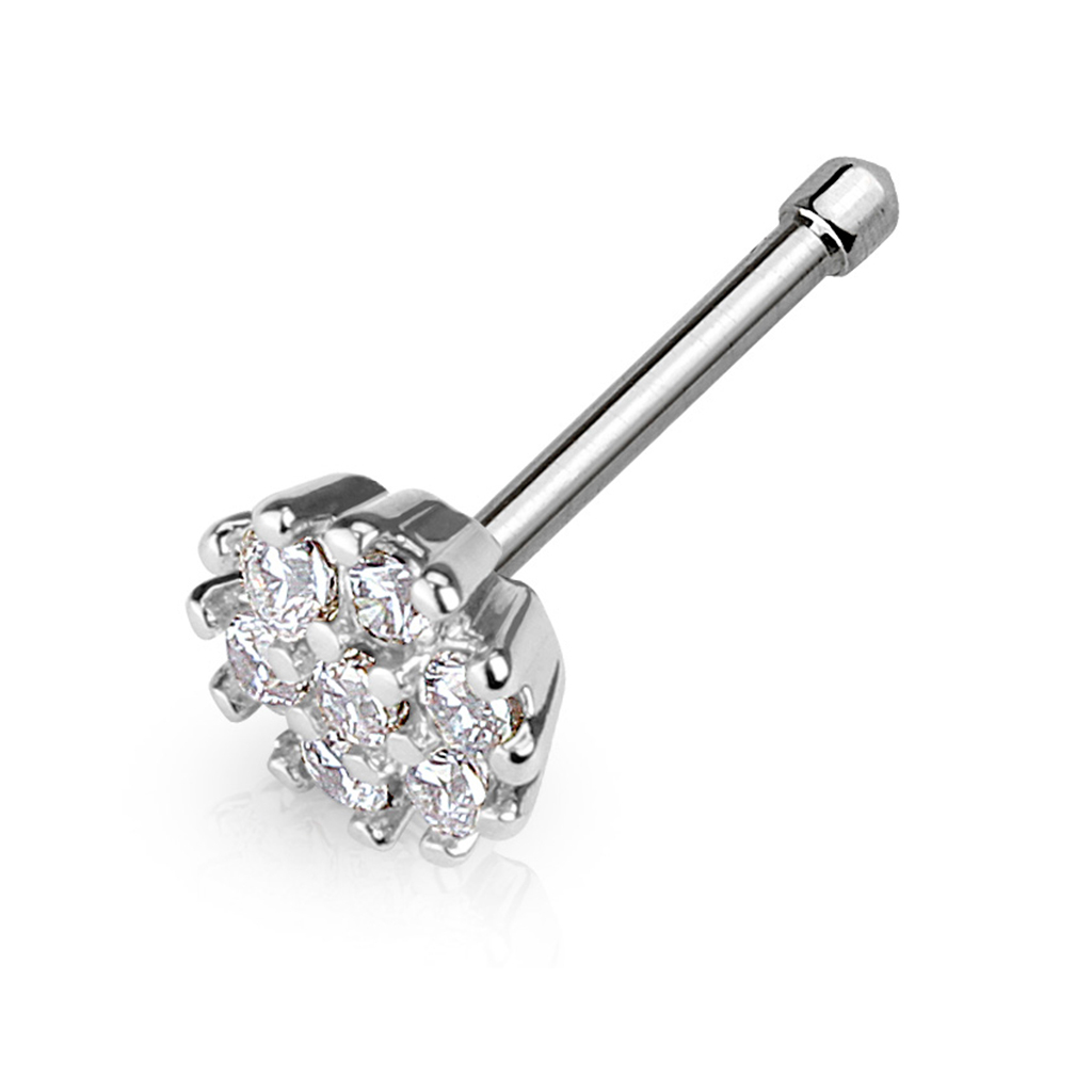 Dieser Nasenstecker ist etwas für dich, wenn du für den femininen Look zu haben bist, aber trotzdem gerne Schmuck trägst, der deutlich sichtbar ist. Dieser Schmuck ist einen klein wenig größer als andere Schmuckstücke, denn er misst ca. 6 mm im Durchmesser. Aber dafür ist er auch reichlich mit kleinen Steinen verziert, die die Blätter einer Blume darstellen. Es kann schon etwas schwierig sein, die Steine vom Rest des spiegelblanken Materiales zu unterscheiden, da sie so dicht beieinander liegen, aber genau das macht den femininen Look aus.
