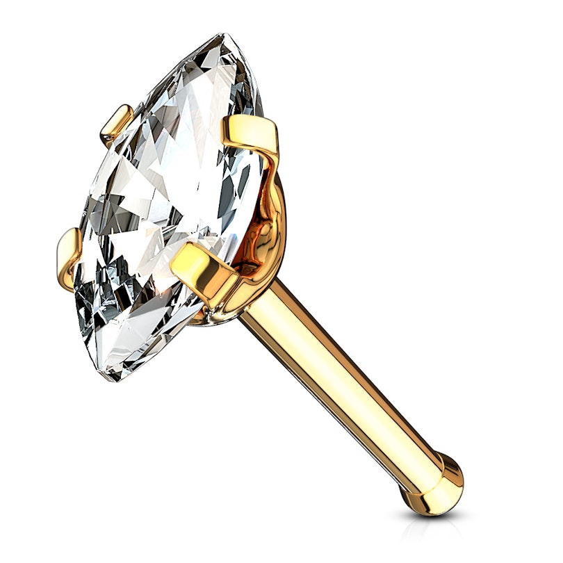 Der Schmuck selbst ist aus Chirurgenstahl gefertigt und misst ca. 6 mm in der Länge und 0,8 mm in der Stabstärke. Das heißt, du kannst diesen Schmuck unabhängig davon verwenden, ob dein Nasenpiercing mit einer Nadel durchstochen wurde, oder es durchschossen wurde. Am Ende des Schmucks befindet sich eine kleine Erhöhung, diese verhindert, dass der Schmuck herausfällt.