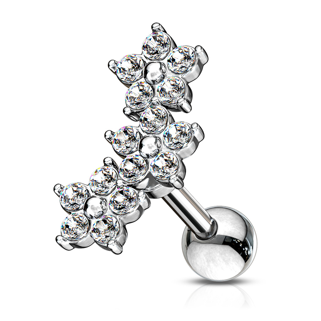 Name: Ohrpiercing mit drei Blumen in einer Reihe