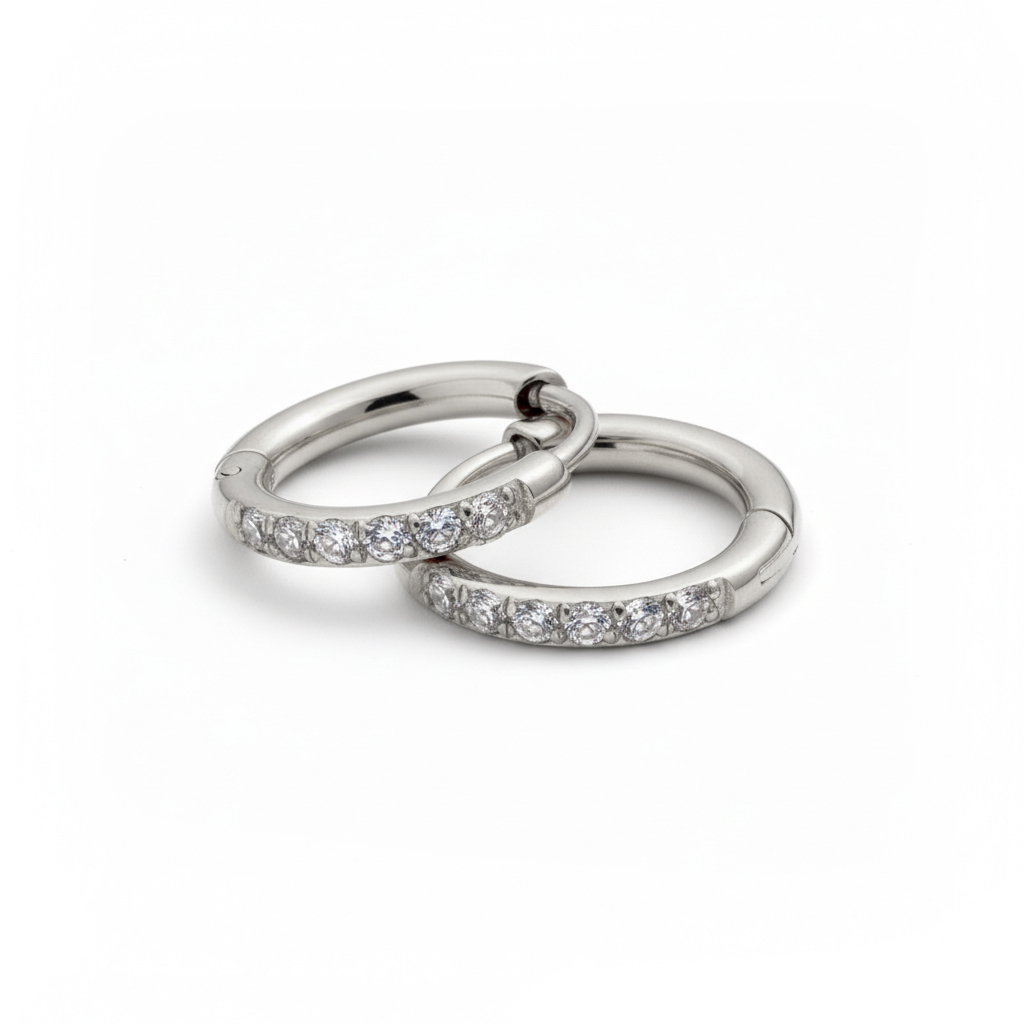 Name: Paar Huggie Ohrringe aus Chirurgenstahl mit Schmucksteinen