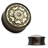 Das tolle Muster auf der Vorderseite, mit der Blume in der Mitte, bildet eine schöne golden wirkende Oberfläche, die toll im Kontrast zu dem Holz steht. Diesen Plug haben wir bis zu 25 mm im Durchmesser, so daß auch die großen Größen gut davon haben.