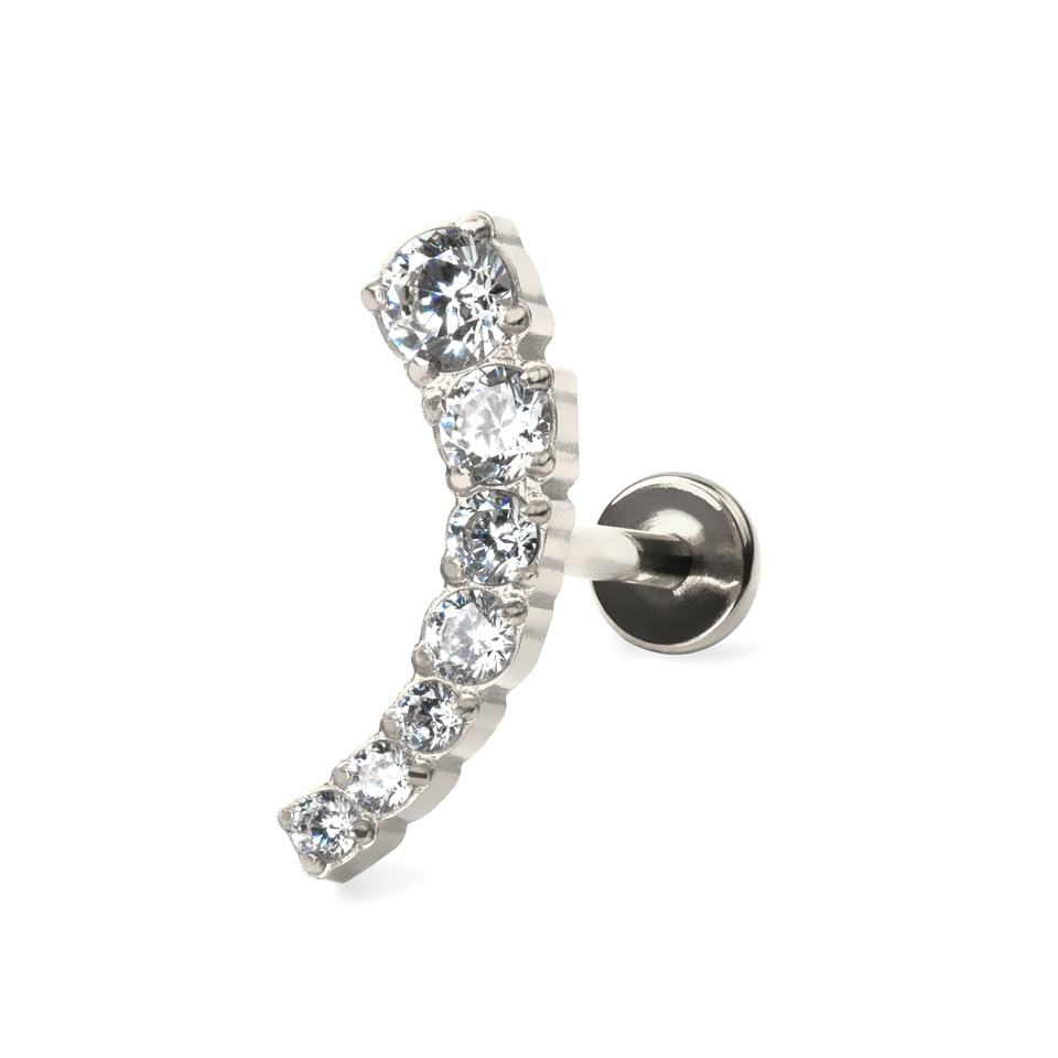 Name: Push-in Labret aus Titan mit gebogenem steinbesetztem Aufsatz