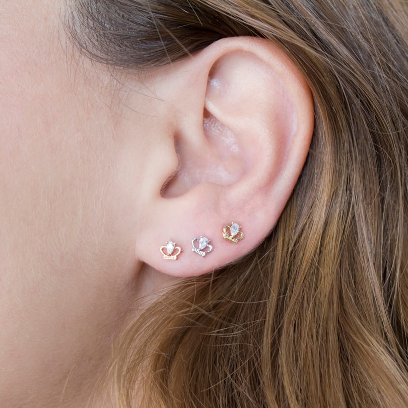 Dieses Labret hat eine schöne Krone auf der Vorderseite. Die Krone ist in verschiedenen Farben erhältlich. Alle Modelle haben die gleiche Länge, Dicke und Steinfarbe. Die Krone hat einen schönen umgedrehten, tropfenförmigen, klaren Stein in der Mitte. Auf der Rückseite der Krone befindet sich ein kleiner Stift, der in das Barbell geschoben wird. Es gibt also kein Gewinde, das aufgeschraubt werden muss. Wenn du denkst, dass die Krone zu leicht herauszunehmen ist, kannst du dem Stift eine kleine Biegung geben, damit er besser in die Schnalle unten im Barbell selbst passt.