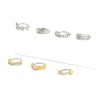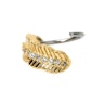 Die Seite des Rings, die mit der Haut in Berührung kommt, besteht aus Chirurgenstahl, die Verzierung aus Messing. Wie bereits erwähnt, gibt es viele Optionen zur Auswahl, aber die Grösse ist bei allen Modellen identisch. Die Stärke des Rings beträgt 0,8 mm. Du kannst dies mit der Grösse deines Piercings vergleichen. Um ihn einzusetzen, drehst du ihn vorwärts oder rückwärts, so dass er ein S bildet; sobald du ihn durch dein Piercing gesteckt hast, schliesst er sich von selbst.