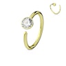 Die einfachen Schmuckstücke sind manchmal die schönsten, was auch dieser kleine Ring mit einem schönen klaren Stein wunderbar beweist. Der Ring ist besonders gut für Nasenpiercings geeignet, da das einfache Design mit dem facettengeschliffenen Stein dort am besten zur Geltung kommt. Aber natürlich kann man den Ring auch in seinem Ohrpiercing tragen z.B. einem Helix oder Tragus.