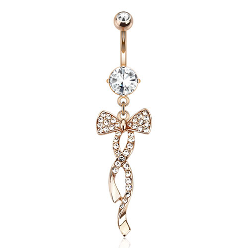 Name: Rotgold überzogenes Bauchnabelpiercing mit einer Schleife und Steinen