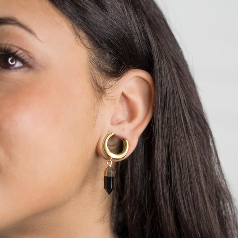 Wenn du dein Ohr gestreckt hast, kennst du wahrscheinlich das Problem, dass du keinen Schmuck mit Anhängern tragen kannst. Aber du kannst es endlich mit diesem Saddle Spreader tun, der weder ein Plug, ein Tunnel noch ein Taper ist. Es ist eine andere Schmuckkategorie. Das Stück ist oben offen und die Kanten sind nach unten gedreht, um dein Ohrläppchen zu umarmen. Du musst ein Mindestloch von 10 mm (3/8 ") haben, um es verwenden zu können. Andererseits musst du dich nicht auf 25 mm (1 Zoll) beschränken, da du das größte Modell von 1 "(25 mm) tragen kannst, auch wenn dein Loch über 1" (25 mm) messt.