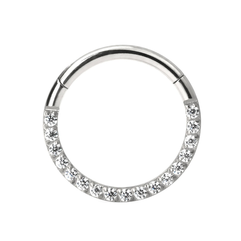 Dieser Titanring kommt in so vielen Grössen und Farben, dass du sicherlich den richtigen für dich finden willst. Der Ring ist auch mit einem Scharnier ausgestattet, das für viele der beliebteste Verschlussmechanismus ist. Ziehe einfach das Segment nach oben, setze das Schmuckstück in dein Piercing, und klicke es erneut nach unten. Schnell und einfach.
