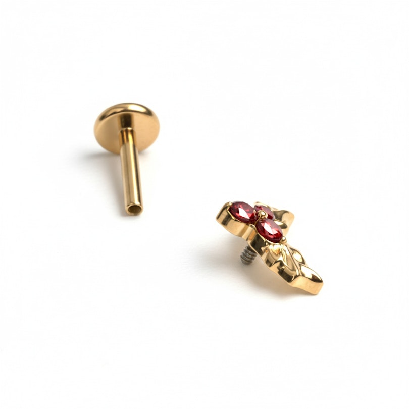 The holly labret in titanium proves you don’t need mistletoe to turn heads. Red stones and gold leaves come together in a design that feels timeless, playful, and just a bit flirty.