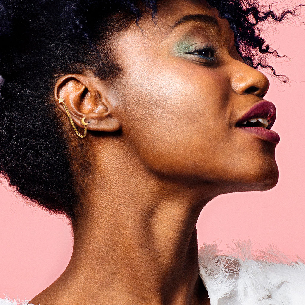Wenn du zwei Ohrpiercings in einem Ohr hast, kannst du diesen Schmuck möglicherweise tragen. Aufgrund der Form des Barbells sind nicht alle Ohrpiercings geeignet. Wenn du zum Beispiel ein Piercing im Ohrläppchen und eines weiter oben im Ohr hast, kannst du es verwenden. Die Länge der Kette beträgt ungefähr 4 cm.