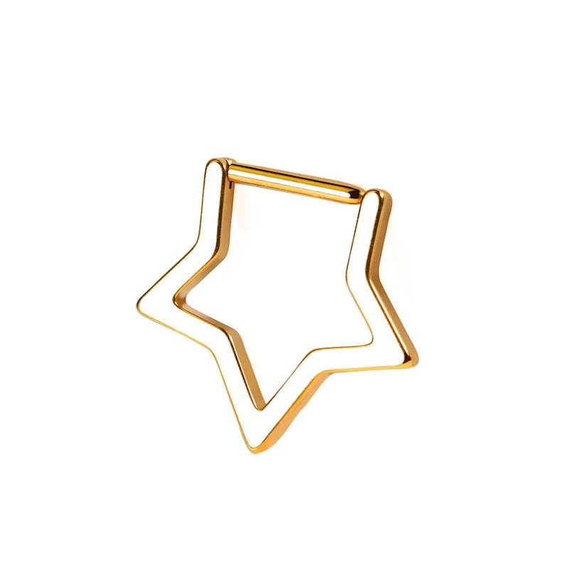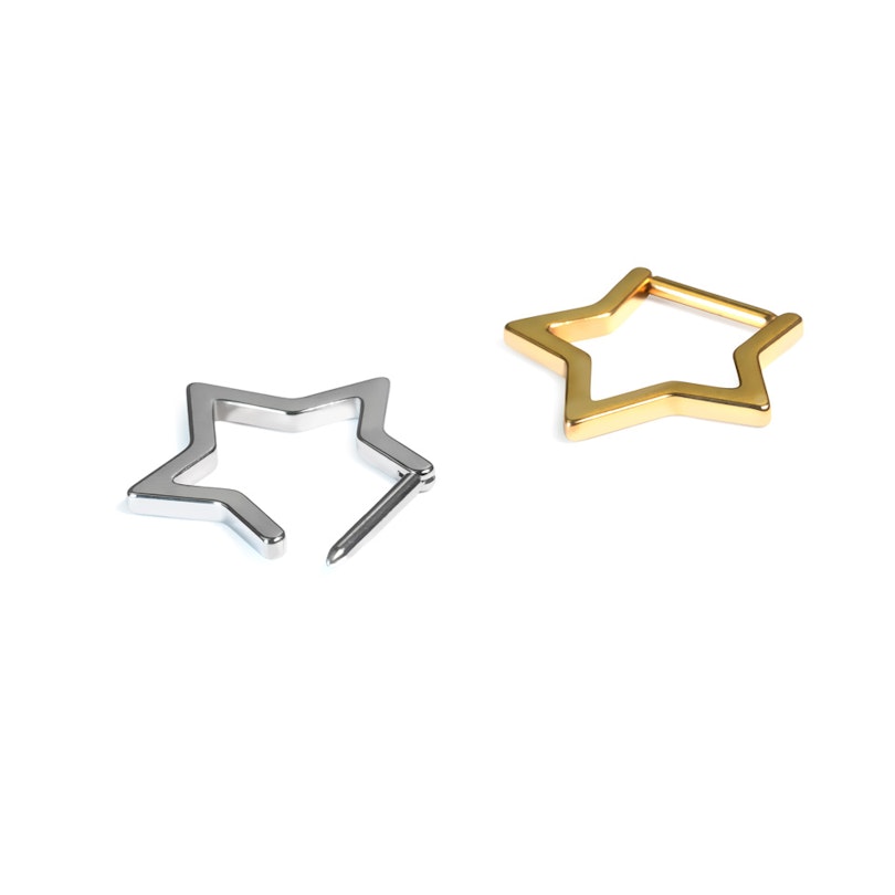 Dieser sternförmige Titan-Klickerring eignet sich perfekt für verschiedene Piercings. Er passt zum Beispiel gut zu einem Septum-, Helix-, Ohrläppchen- oder Rook-Piercing. Er besteht aus beständigem Titan, ist wasserfest, hautfreundlich und langlebig. Dank der Scharnieröffnung lässt es sich einfach in dein Piercing einsetzen. Dieses Stück ist eigentlich hohl, wodurch es einen klobigen Look hat und trotzdem super leicht und bequem zu tragen ist.