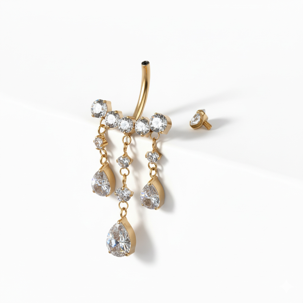 Name: Titan-Bauchnabelring mit hängenden Schmucksteinen