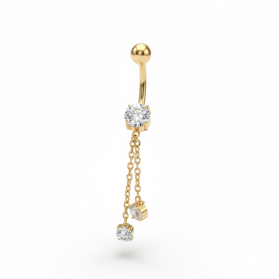 Titan-Bauchnabelring mit Ketten und Schmucksteinen