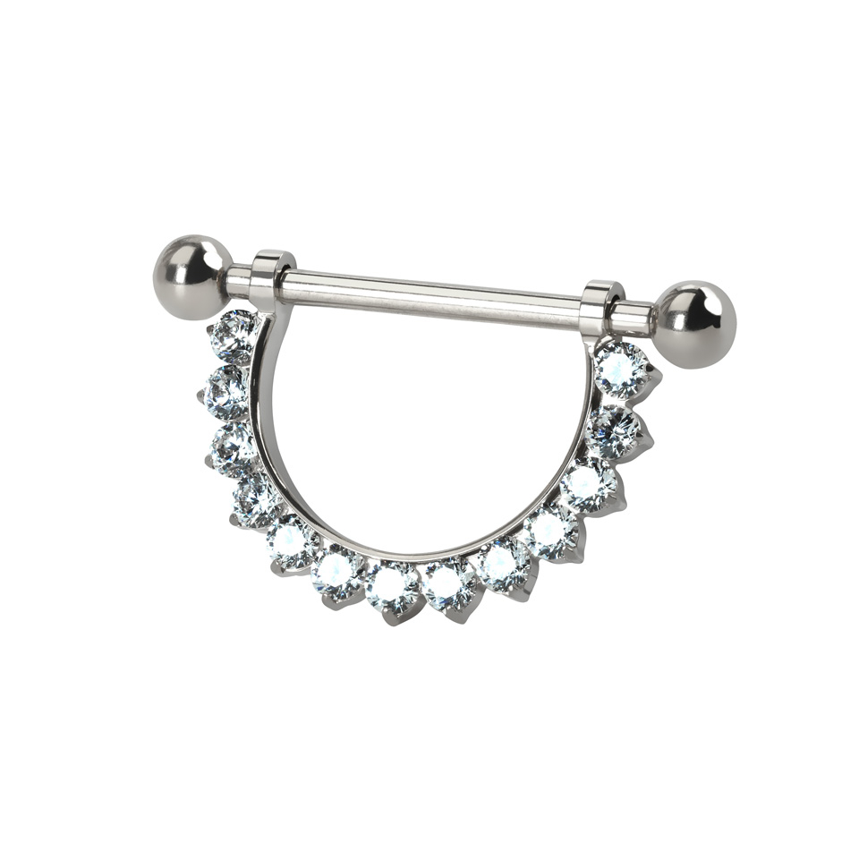 Titan-Brustwarzenstab mit steinverziertem Halbkreis