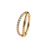 Dieser Doppelring aus Titan mit Schmucksteinen auf einem Band von Bodymod überzeugt durch sein gespaltenes Design: eine Hälfte glatt und minimalistisch, die andere mit Schmucksteinen besetzt. Zwei Stimmungen, ein Ring.