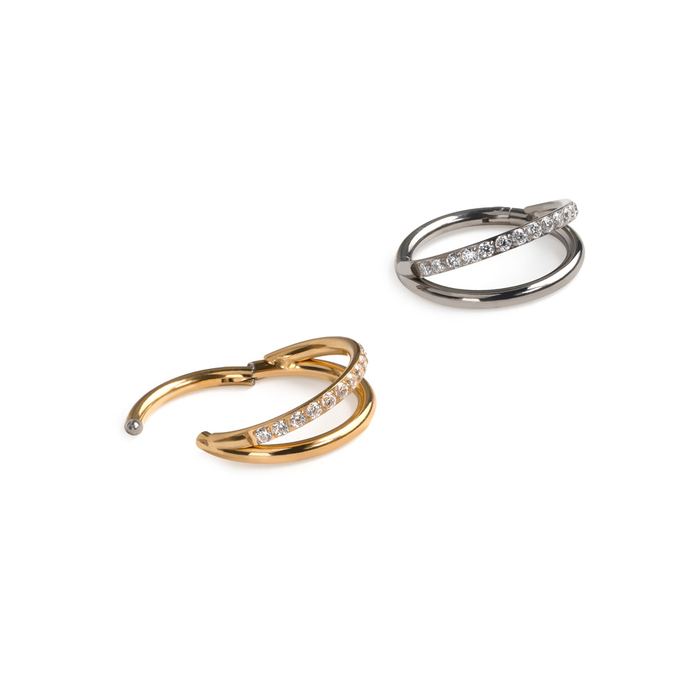 Name: Titan-Doppelring mit Schmucksteinen auf einem Ringband
