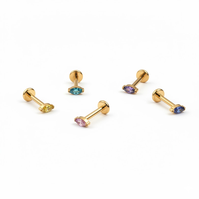 Der marquisegeschliffene Stein setzt ein elegantes Detail, das sich harmonisch in jedes Ohrarrangement einfügt. Hergestellt aus ASTM F136 Titan, ist er hypoallergen, wasserfest und kann bei richtiger Pflege ein Leben lang halten. Das Innengewinde sorgt für sicheren Halt ohne Reizungen – einmal eingesetzt, brauchst du dir keine Sorgen mehr zu machen.