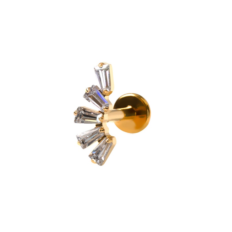 Das Titan-Labret mit Steinen im Baguetteschliff passt perfekt zu Momenten, die klare Struktur verlangen. Die präzise angeordneten Steine sorgen für einen harmonischen Look am Ohr.
