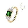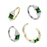 Dies ist das Upgrade, das deine Piercings noch nicht kannten. Dieser Bodymod Premium Titanring mit grünem Stein in der Mitte besticht durch sein kühnes, quadratisches Design, das von zwei weissen, dreieckigen Steinen eingerahmt wird, die das Licht aus jedem Winkel einfangen. Eine elegante Geometrie mit einem Hauch von Farbe.