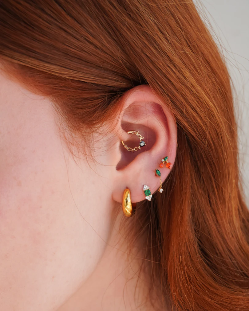 Erhältlich in goldener und silberner Farbe, ist dieser Huggy bereit, in deinem Daith, Helix, Rook oder Ohrläppchen zu glänzen.