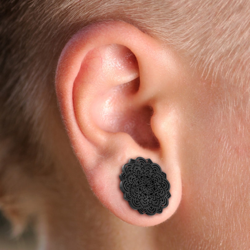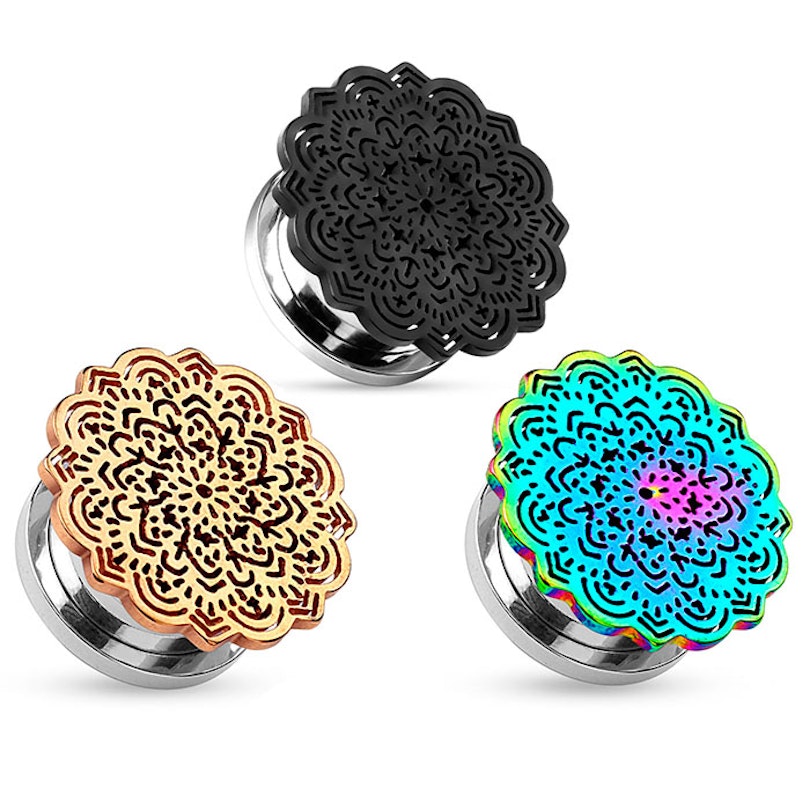 Hier bekommst du das schöne und besonders detaillierte Mandala in verschiedenen Farben, die dem Schmuck das gewisse Extra verleihen und das schöne Design umso schöner hevor heben. Wenn der Schmuck im Ohr sitzt, wird das farbige Mandala das einzige sein, was man von vorne sehen kann. Der eigentliche Tunnel ist nämlich aus blanken Chirurgenstahl hergestellt und hat ein praktisches Schraubgewinde erhalten.