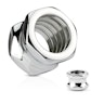 Hexa bedeutet 6, was eigentlich schon die Form dieses sechseckigen Tunnels erklärt - genau wie eine Schraubmutter. Auf der Innenseite des Tunnels sind kleine Ringe, die wie das Gewinde einer Schraubmutter aussehen. Du kannst dieses Schmuckstück in sechs verschiedenen Größen bestellen. Die kleinste Größe beginnt bei 6 mm und endet bei 16 mm.