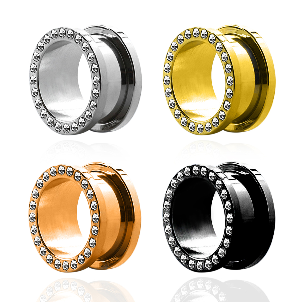 Wenn du nach einem neuen Tunnel suchst, haben wir möglicherweise das richtige Produkt für dich. Dieser Tunnel wird trotz seines einfachen Aussehens zu jedem Ohr passen. Denkst du nicht, dass er auch zu dir passen würde? Der Schmuck besteht aus Chirurgenstahl, die verschiedenen Varianten wurden mit unterschiedlichen Farbbeschichtungen beschichtet. Du kannst diesen Tunnel beispielsweise in einer schwarzen oder goldenen Edition erwerben. Der Tunnel ist mit einem Schraubgewinde ausgestattet, dies vereinfacht das Einsetzen des Schmucks signifikant. Schraube einfach die Rückseite des Tunnels auf, setze den Schmuck in dein Ohr und Schraube das hintere Ende wieder fest. Es gibt eine Sache, die bei allen Varianten des Schmucks gleich ist - die Steine auf der Vorderseite. Auf dem Rand befinden sich viele kleine klare Steine und Glitzer. Die Steine auf dem Schmuck sind mit ihm verklebt. Daher sollte man vermeiden, dass der Schmuck mit heißem Wasser in Berührung kommt. Heißes Wasser kann den Klebstoff lösen und dies könnte dazu führen, dass die Steine herausfallen.