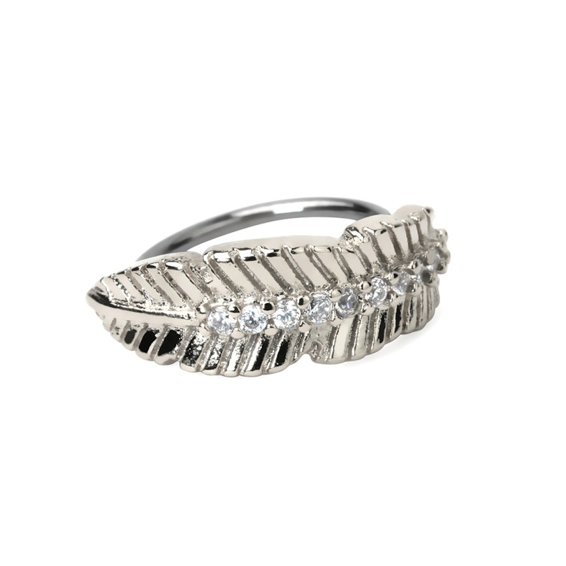 Name: Twist-Ring mit Feder und Schmucksteinen
