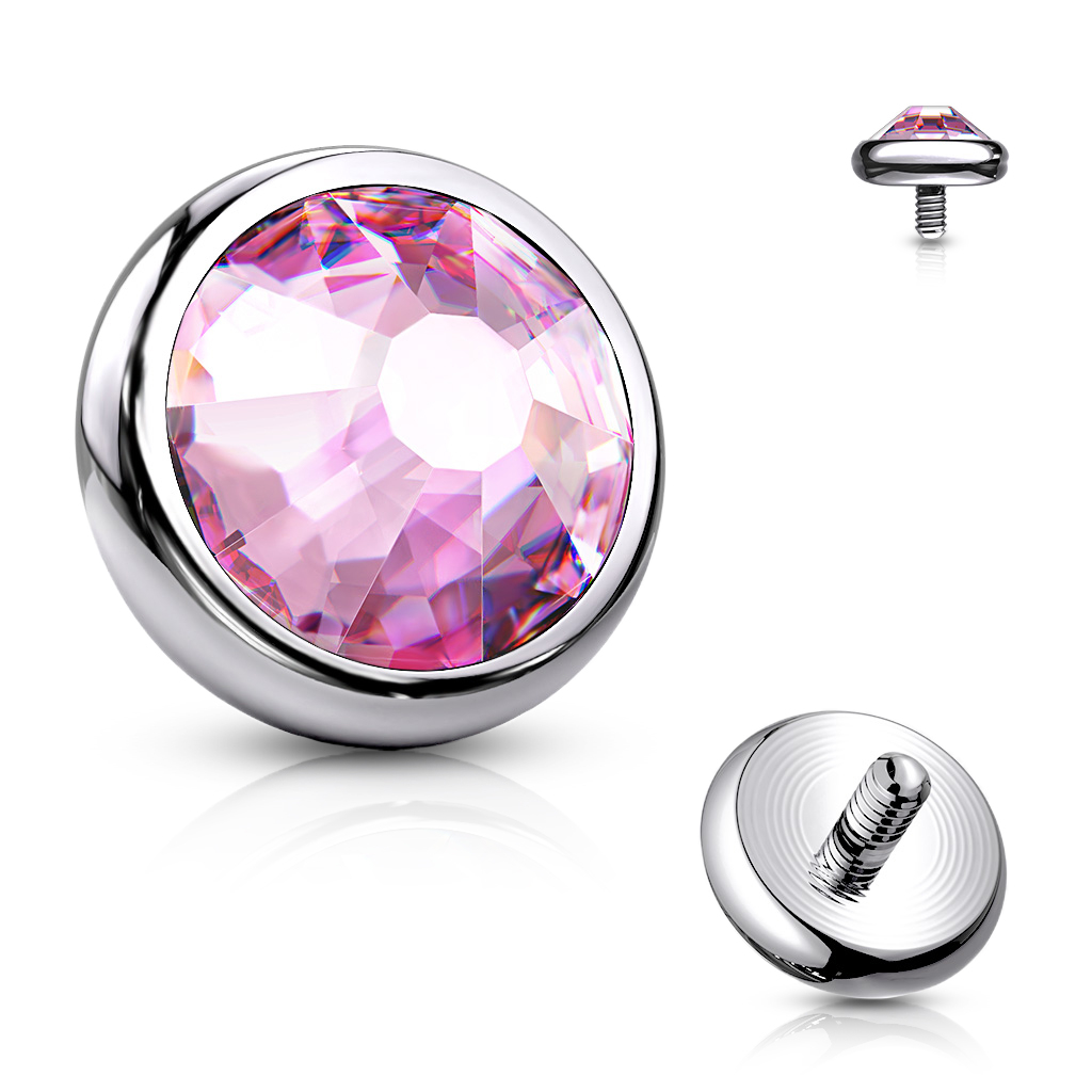 Dieses Dermal Anchor hat einen 4 mm breiten Kopf mit einem schönen mehrflächigen Stein. Der Stein wurde wie ein kleiner "Berg" mit einer flachen Bergspitze geschliffen, so das rund herum viele kleine Flächen entstanden sind, die dem Stein seinen charakteristischen Look geben.