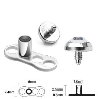 Hier bekommst du 25 Dermal Anchor Sets. 25 x Basis aus reinem Titan und 25 x Dermal Tops aus Chirurgenstahl mit einem klaren Stein. Du entscheidest selbst, ob die Dermal Tops 3, 4 oder 5 mm groß sein sollen.