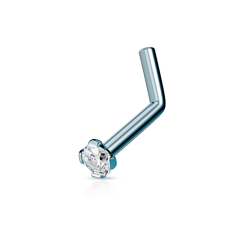Bestelle dir hier ein wirklich schönes und elegantes Schmuckstück für dein Nasenpiercing. Es ist wirklich einzigartig und trotzdem diskret. Dieses schöne Nasenpiercing ist wie ein "L" geformt und eine Mischung aus Nasenstab und Nasenschraube, die etwas komplizierter beim einsetzen ist. Hier bekommst du die perfekte Mischung aus beiden Produkten. Der Schmuck lässt sich bequem wie ein Nasenstecker hantieren und ist somit auch gut geeignet, wenn man seinen Schmuck öfter mal wechselt. Der kleine Knick im Stecker sorgt jedoch dafür, daß dein Nasenpiercing nicht herausfallen kann, was dem Design der Nasenschraube schon näher kommt.