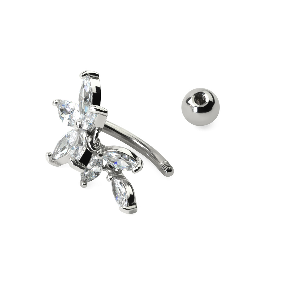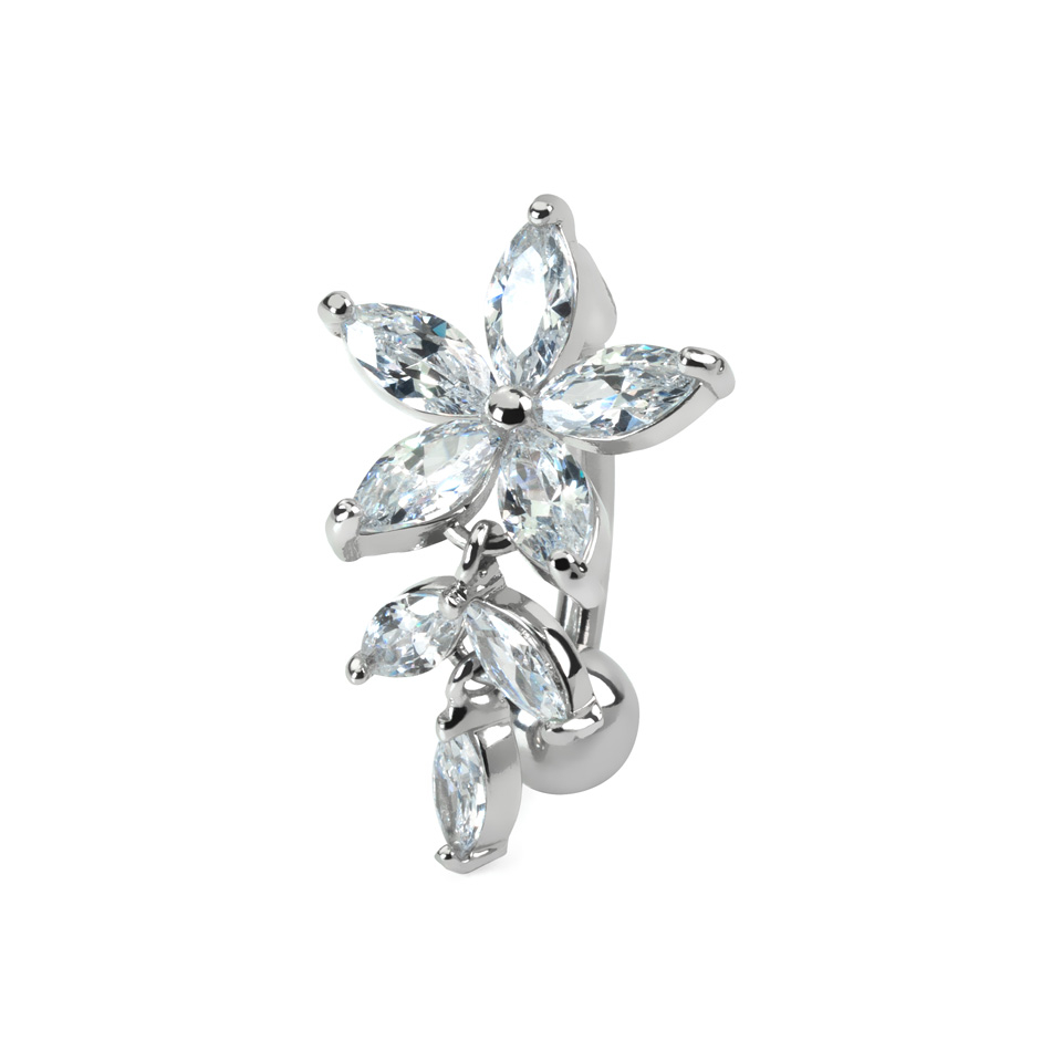 Name: Umgekehrtes Bauchnabelpiercing mit Blume aus Steinen