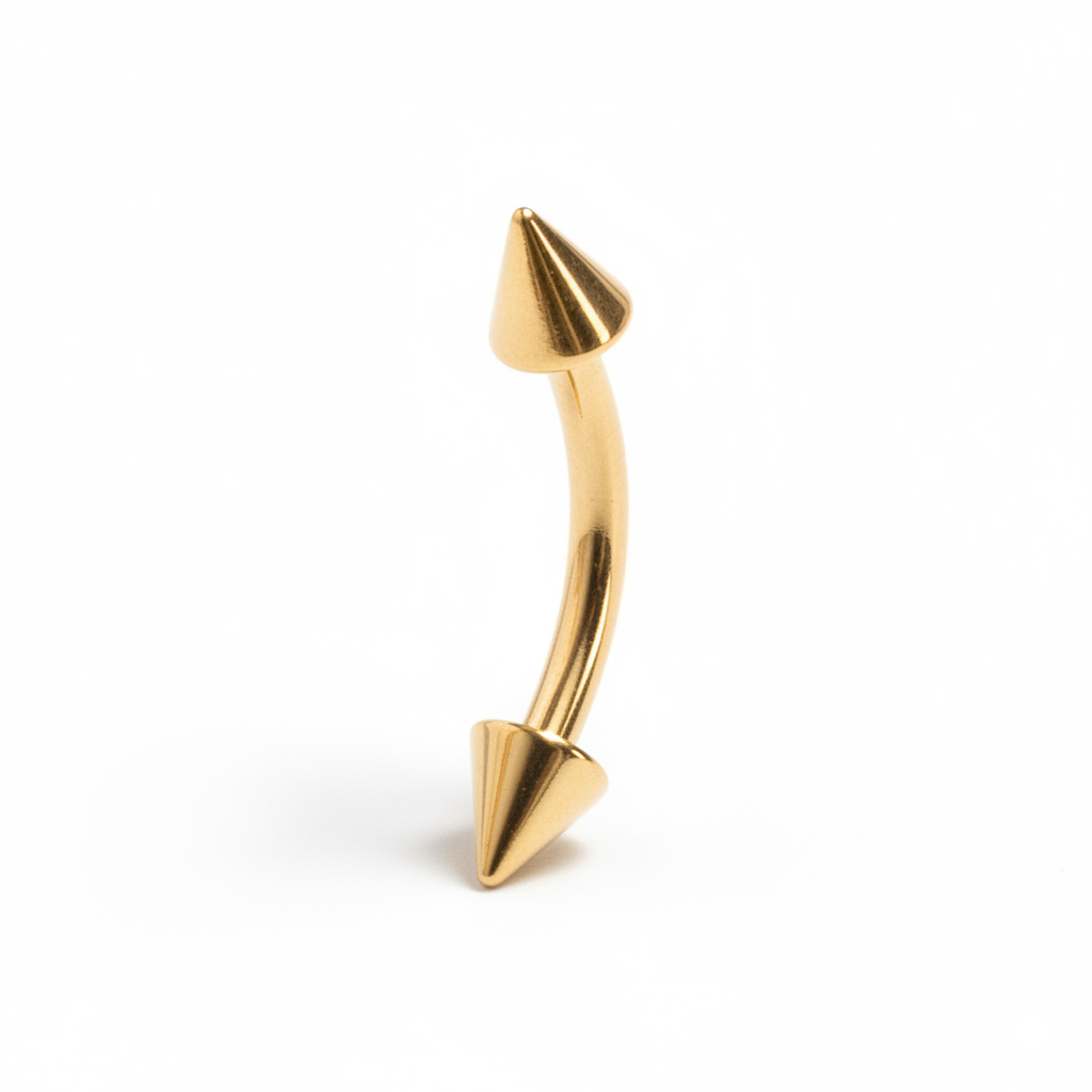 Möchtest du mal wieder einen neuen Look für dein Brustwarzen- oder Augenbrauenpiercing? Dann schau dir doch mal unseren schönen, vergoldeten gebogenen Stab mit seinen frechen Spikes an. Diesen führen wir in zwei verschiedenen Stabstärken und zwei verschiedenen Längen, so daß du selbst entscheiden kannst, wofür du ihn verwenden willst. Selbst für weibliche Intimpiercings ist dieser gebogene Stab geeignet um den Look ein wenig aufzupeppen.