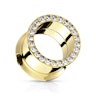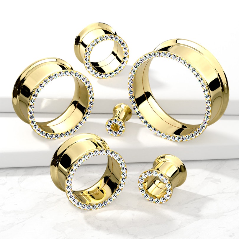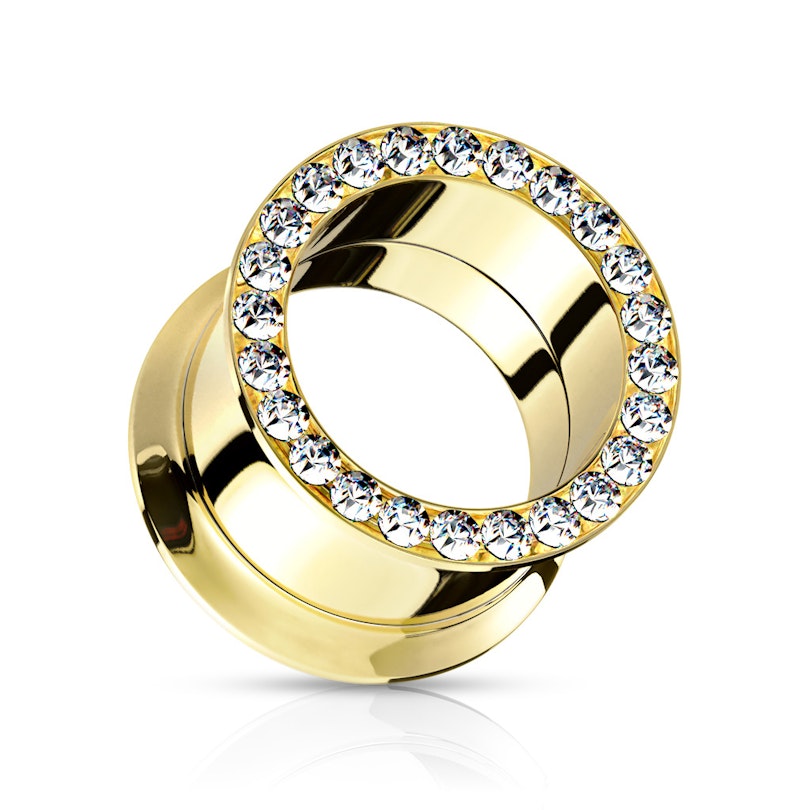 Dieser Tunnel ist aus vergoldeten Chirurgenstahl hergestellt und mit vielen klaren Steinen entlängs der Kante verziert.