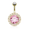 Name: Vergoldetes Bauchnabelpiercing mit einem großen rosa Stein