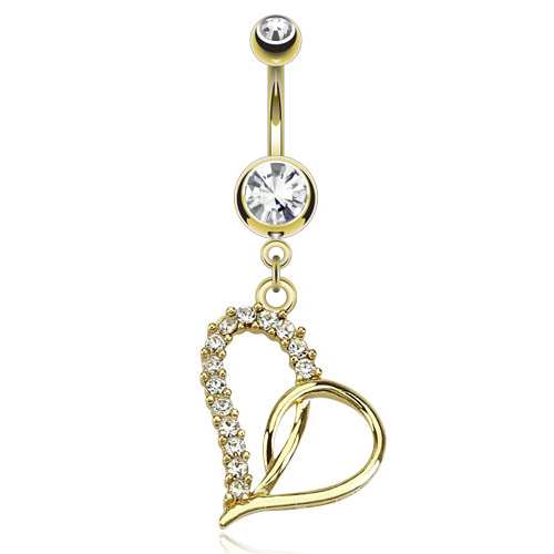 Name: Vergoldetes Bauchnabelpiercing mit einem Herz und klaren Steinen
