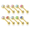 Name: Vergoldetes Zungenpiercing mit verschieden farbigen Steinen
