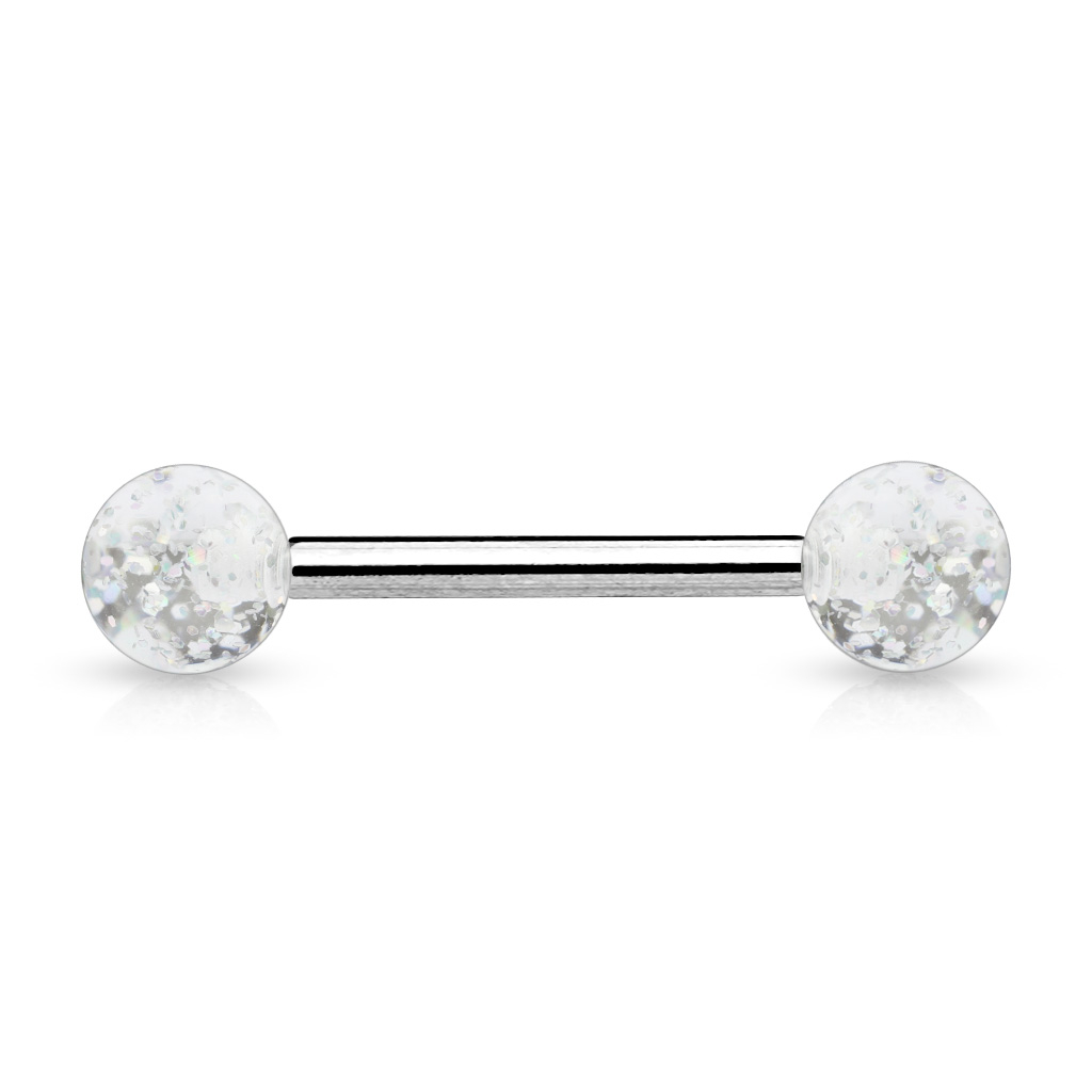 Dieses Zungenpiercing besteht aus Chirurgenstahl und ist mit farbigen Acrylkugeln ausgestattet.