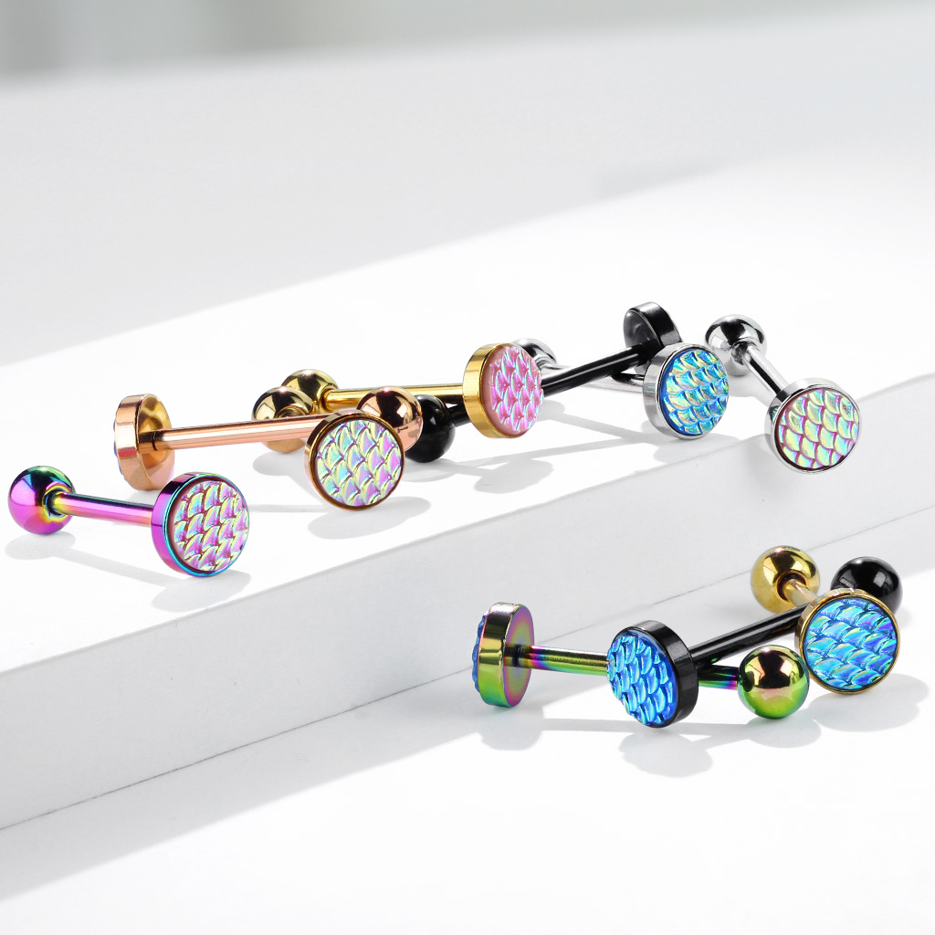 Name: Zungenpiercing mit farblich nuancierten Schuppendesign
