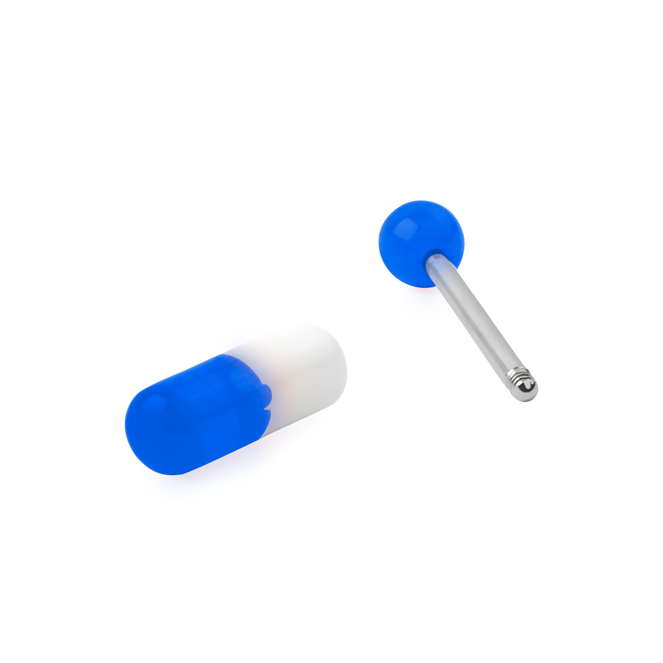Eine bittere Pille schlucken ist nicht schön, aber diese Pille hier musst du zum Glück nicht wirklich schlucken, sondern nur auf die Zunge legen. Dieses Zungenpiercing ist ein wirklich schönes und lustiges Schmuckstück, welches eine Pille für die Ewigkeit darstellt.