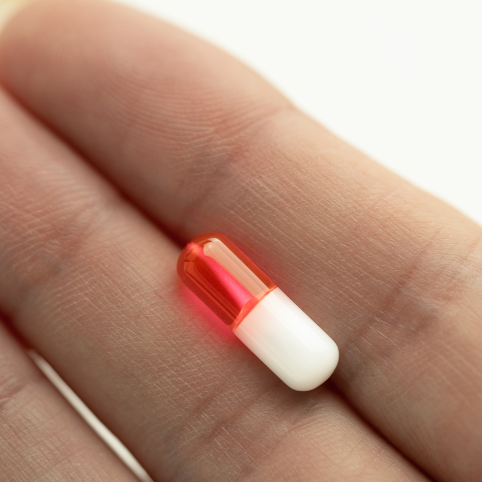 Die zweifarbige Pille wurde sehr naturgetreu nachgestellt und hat eine Länge von 16 mm und eine Stabstärke von 5 mm. Allerdings hat sie wenig mit herkömmlichen Medikamenten zu tun. Diese einzigartige Pille ist in sieben verschiedenen Farbkombinationen erhältlich. Die eine Hälfte der Pille ist bei allen Modellen weiss, während die Farbe der anderen Hälfte oben ausgewählt werden kann.